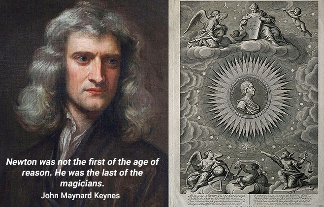 La o cercetare mai atentă putem observa cum marii oameni de știință din istorie au fost și mari mistici, preocupați de căutări ezoterice, precursoare ale descoperirilor științifice pe care le-au avut. Unul dintre ei a fost Isaac Newton (1642-1727), considerat geniul fondator al științei moderne, matematician și fizician, rațional prin excelență, cunoscut pentru descoperirea legilor mișcării, ale gravitației universale, pionier al calculului matematic, a fost mult mai mult decât un savant, a fost un mistic, convins că știința este o cale de întâlnire cu Dumnezeu. De la fizică și alchimie, la teologie și escatologie, ca doctrină filosofică și teologică despre soarta finală a lumii și a omului, cercetarea lui Isaac Newton a avut ca sursă o căutare personală a Divinului.
