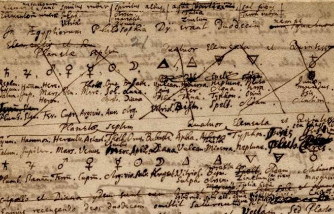 Isaac Newton a lăsat în urmă peste un milion de cuvinte de note alchimice, înregistrări de laborator și transcrieri, mai mult decât a scris despre optică sau matematică, incluzând caiete de laborator și jurnale de experimente, traduceri și comentarii despre autori alchimiști anteriori din perioada renascentistă, reflecții teoretice despre materie, spirit și creație divină.