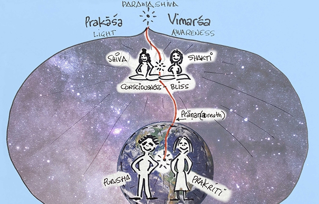 Același fenomen care îl înlănțuie pe cel care nu discerne permanentul de impermanent, este eliberare pentru cel care printr-o cunoaștere corectă, vede ceea ce este așa cum este. Cum spune Lakshmanjoo, prin Prakriti cobori și tot prin Prakriti te înalți. Cel care cunoaște în mod limitat, realizând separații, prin intermediul constructelor mentale (vikalpas) este coborât în planurile inferioare de conștiință – pentru el, Prakriti înlănțuie. Cel care cunoaște ceea ce se manifestă (Prakriti) ca având natura Divinității, fiind un joc divin, este înălțat prin Prakriti către planurile superioare de conștiință – pentru el, Māyā este divină, este forța creativă a lui Siva.